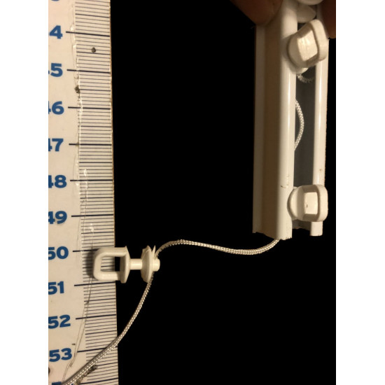 Waveplooi glijders met 6 cm afstand. Deze kunt u meteen in de meeste rails schuiven om waveplooien aan te hangen. De prijs is € 5,- per meter.